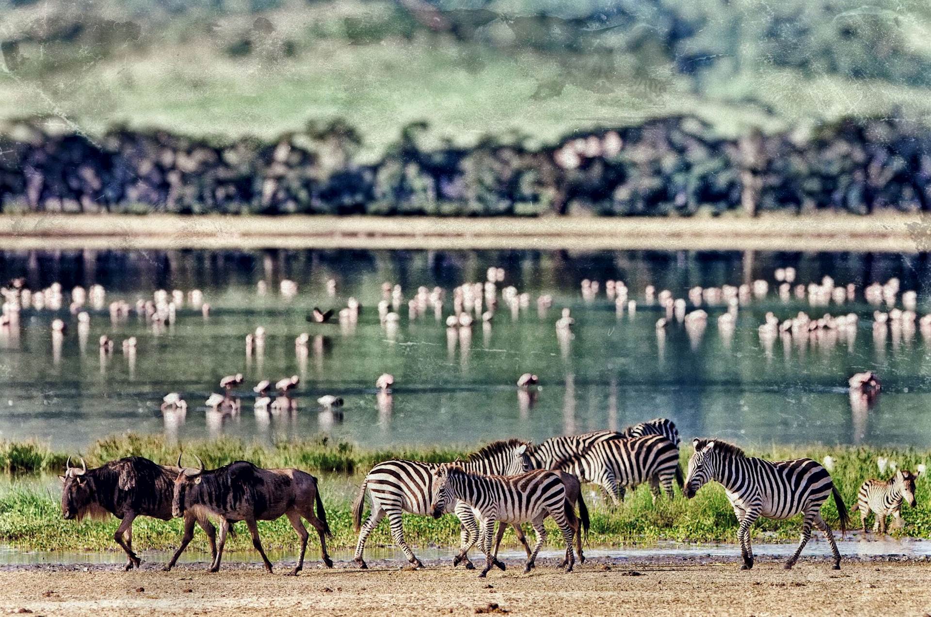 Ndutu is situated in the northern part of the Ngorongoro Conservation Area within the magnificent Serengeti. Lake Ndutu forms a shallow basin where water accumulates from the nearby areas of slightly higher altitude. The water in the lake is extremely saline, too saline for human consumption, but Lake Ndutu becomes alive with animals during the migration because it is surrounded by the Ndutu woodlands and the Short Grass Plains, which provide ample cover and food. From November to May, vast migratory herds visit the Ndutu area and provide a feast for the resident predators. Huge numbers of migratory birds come to the plains to feed and to escape the cold European winter. The lakes attract flocks of flamingos and other water birds. Animal viewing is excellent everywhere, as the surrounding landscapes are covered in sweeping grasslands which provide the perfect habitat for the migratory route for hundreds of thousands of wildebeest, antelope and zebra. Other commonly spotted species include leopard, lion, cheetah, caracal, serval, African wildcat, and a variety of prolific birdlife.