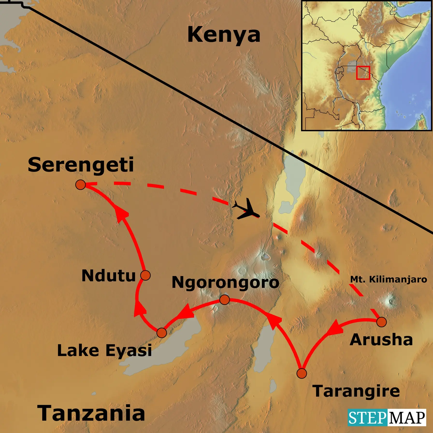 Join us on this trip-of-a-lifetime as we explore the exotic wilderness of East Africa for 8 days. This is a small group safari that explores both the wildlife and cultural highlights of Tanzania, with all accommodations in smaller wilderness lodges or deluxe tented camps. We’ll be visiting some of the world’s most exciting wildlife destinations…including Tarangire National Park, the fabled “Lost Land” of Ngorongoro Crater, incredible Lake Ndutu wildlife area, and legendary Serengeti National Park. The variety of landscapes and animals in all of these parks are beyond belief! A land of plains, lakes and mountains, with a narrow, low-lying coastal belt, Tanzania is East Africa’s largest country and also one of its most diverse. Tanzania is home for more than 100 different ethnic groups, mostly of Bantu origin, each with its own language and customs.