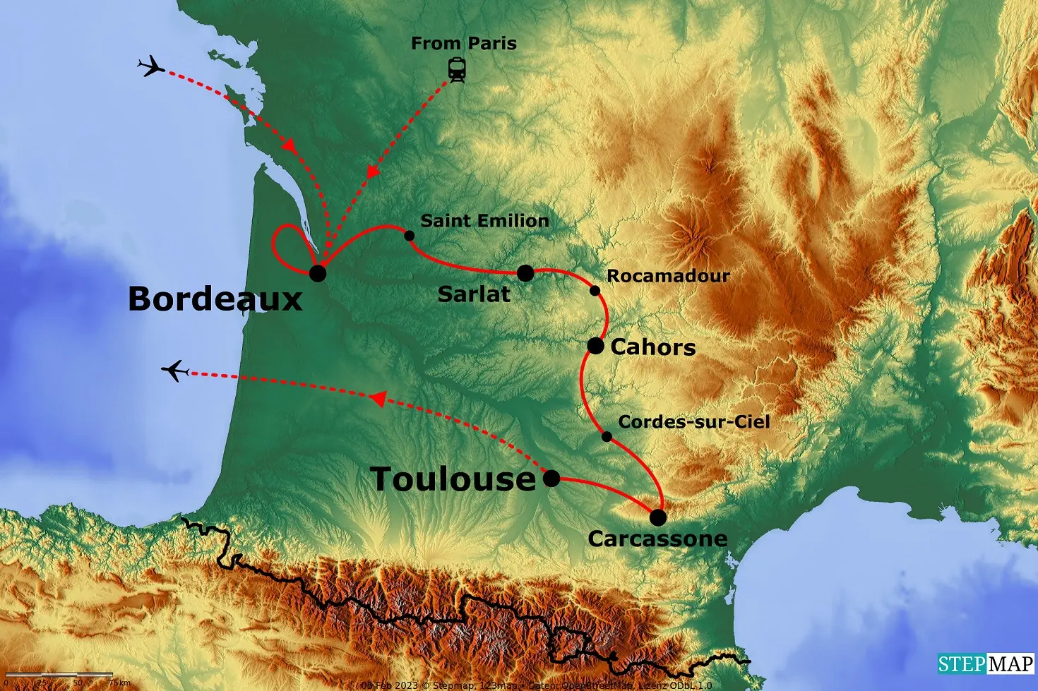 We’ll ramble through breathtaking landscapes, marvel at the fascinating culture, enjoy the exquisite food and taste world-class wines from some of France’s best producers! This distinctive tour starts in the famed wine region of Bordeaux, near the windswept Atlantic coast, and winds its way across the entire southwest of France, exploring the enchanting small towns and marvelous landscapes this region is known for, ending in the charming city of Toulouse, known as the “Pink City” for its abundance of buildings made with terra cotta-bricks.