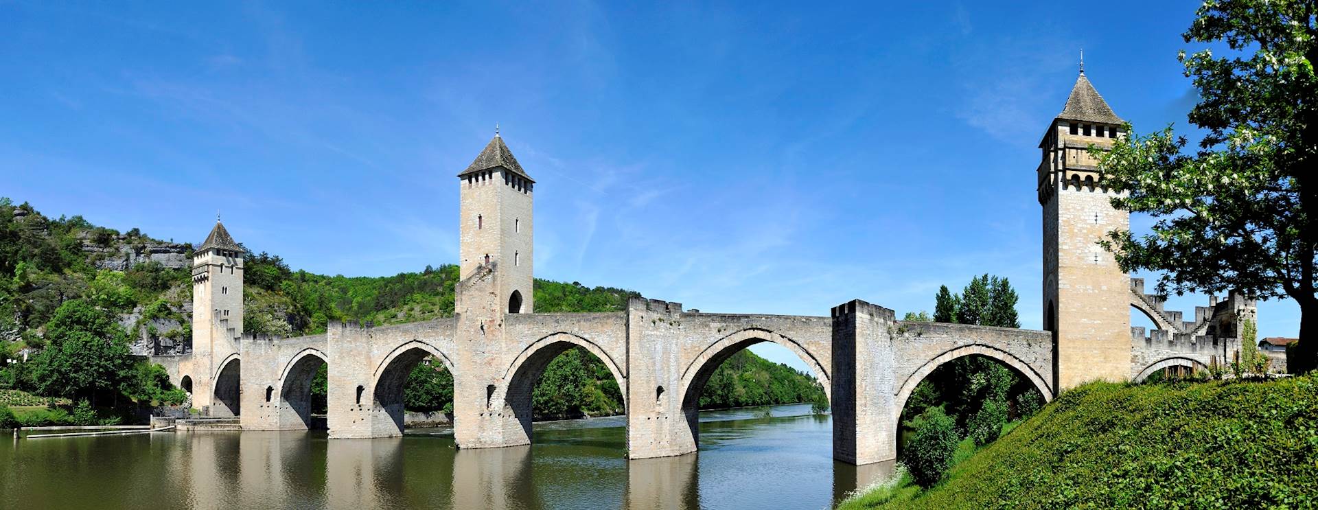 After another exquisite French breakfast we'll visit the cave of Peche Merle, famous for its prehistoric cave paintings and one of only a few such sites open to visitors. Extending for more than a kilometer from the entrance are caverns whose walls are painted with murals dating back to 25,000 B.C.! Since our morning will be spent partially underground, it's only fitting that our lunch be spent in the sunshine...our private coach will whisk us to a scenic spot where we can enjoy a picnic and a wine tasting of some other French varieties. To make up for our indulgence we'll have an easy walk through the rolling, green hills along the river Lot to the tiny village of Saint-Cirq-Lapopie - perched on a cliff three hundred feet above the river, the town is considered to be one of the prettiest medieval villages in France. After a stroll around here we drive to medieval Cahors, known for its deep red wine, elaborate municipal gardens and the Pont Valentré, a medieval bridge with 3 towers, considered the best preserved fortified, medieval bridge in France.