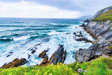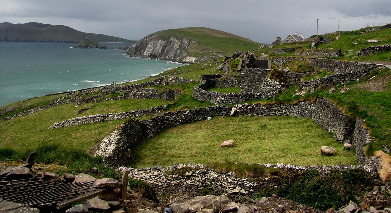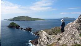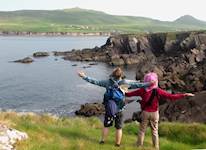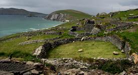 All of this sightseeing will work up an appetite, so we'll stop for lunch near the town of Ballydavid, where we can enjoy some of the local specialties as we relax. Ballydavid is famous as the spot where St. Brendan the Navigator departed to sail west to America in a small hide-covered boat...in the year 530! After lunch we'll go a bit further down the coast and begin a truly extraordinary walk, The Edge of The World Walk. So named because of the ancient belief that this part of the coast was the edge of the known world. Our walk will follow the rugged coastline and provide constant views both of the windswept sea and the inland mountains. For thousands of years these trails were walked by all of the people who needed to traverse this coastline...you'll tread in the footsteps of monks, farmers, Vikings, villagers, and soldiers of all kinds.