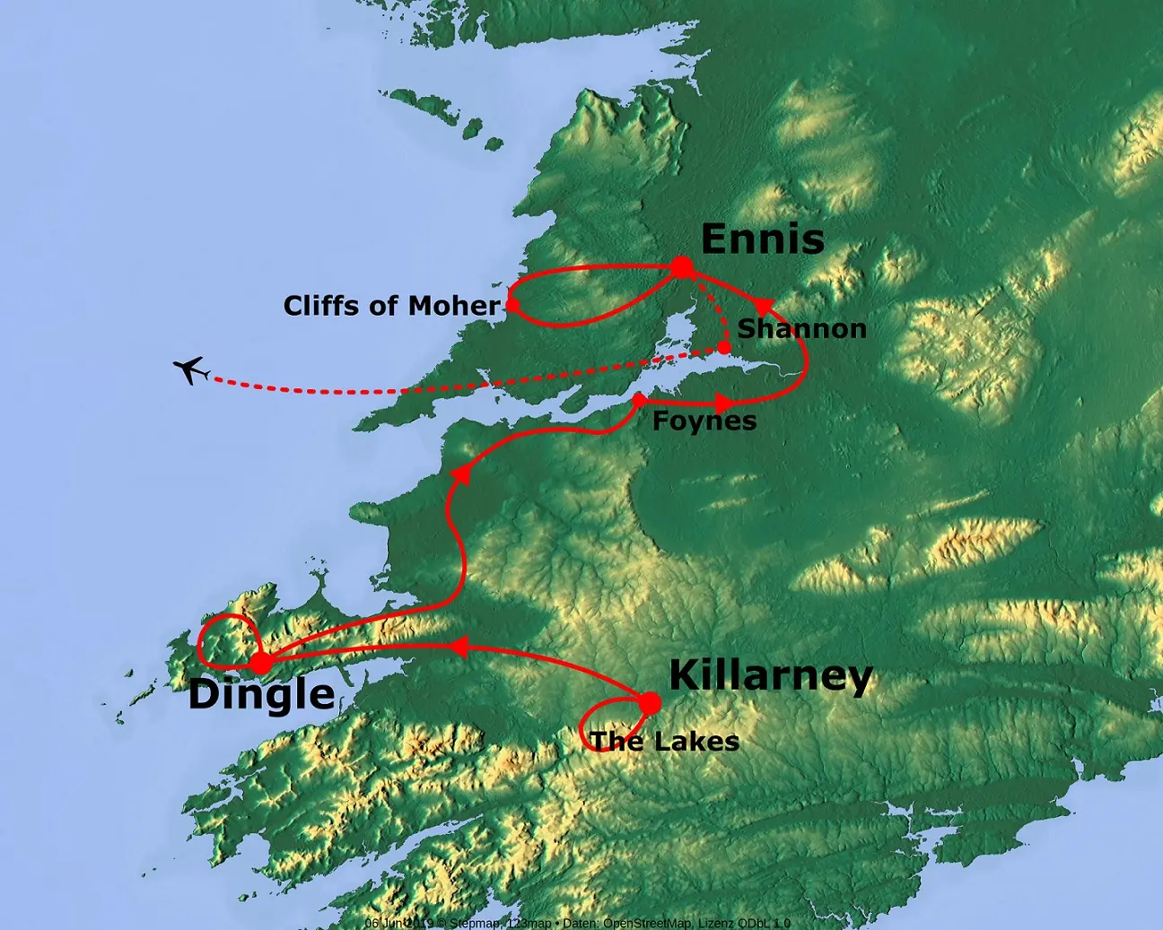 Most US flights arrive in Ireland very early in the morning. You can arrange a private transfer, but there are also bus/taxi connections from Shannon (and train connections from Dublin) to your tour starting point, a beautiful 4 star hotel, situated in the town center of historic Killarney.