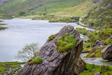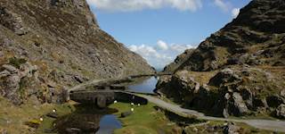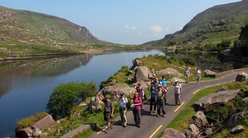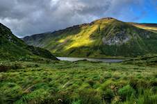 After putting away our hearty Irish breakfast, (you should be getting quite good at this by now) we'll board our coach and settle in for a wonderfully scenic morning drive across the base of the Iveragh Peninsula. . The rugged mountain landscape will soon give way to coastal views, where rocky cliffs meet pounding surf. Finally, our road will cut up away from the coast through the Slieve Mish Mountains and onto the northern shore of the Dingle Peninsula. Here we'll begin today's hike, an easy stroll up through the Loch an Duin valley, with the intense emerald green of the landscape contrasting with the gray windswept rocky cliffs. Rounding a bend in the trail you'll suddenly be rewarded with views of one of the most beautiful and secluded Irish mountain lakes you'll have the pleasure to see! At Lake Adoon the sheep and salmon are probably our only companions as we walk around this mountain gem to the myriad waterfalls on the far side. A perfect spot to enjoy our trail lunch and relax in the sun!