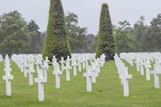 Lastly, we'll spend time at the nearby American Cemetery of Normandy. Located on the coast, between Arromanches and Grandcamp Maisy, this vast site overlooks Omaha beach. It reunites the graves of 9,387 soldiers fallen in combat. The chapel, Memorial, and the Walls of the Missing complete the site. The Visitor Center pays homage to the courage and the skill that were required to conduct Operation Overlord and to ensure Europe's liberation, together with the ultimate sacrifice made by those who are laid to rest within this site. Truly a moving experience.
