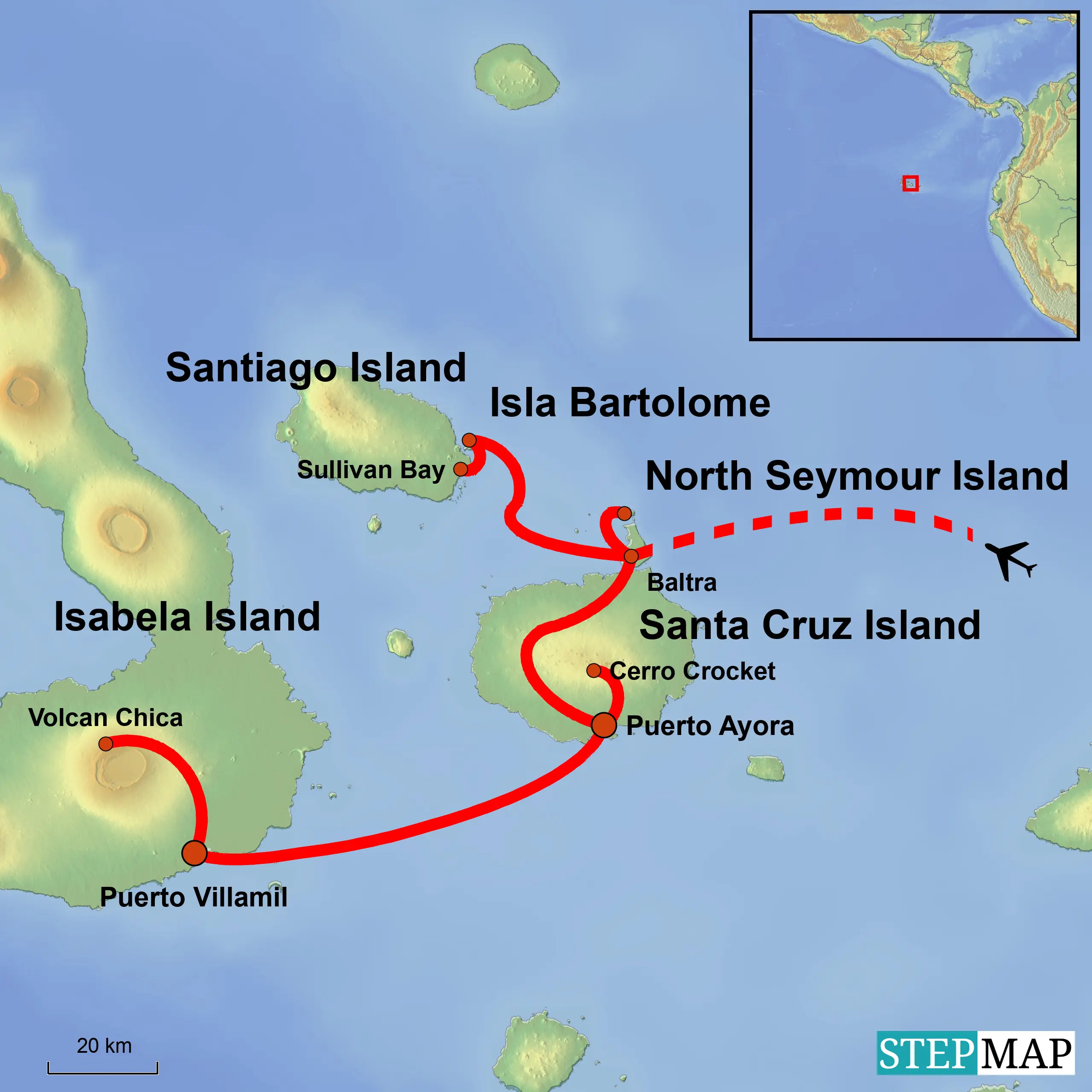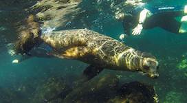 This morning we'll transfer to the Itabaca Canal for our private boat to Bartolome Island, named after the principal surveyor aboard Darwin's ship, the HMS Beagle. Bartolome is a somewhat barren islet east of Santiago Island, home to some of the most dramatic and distinctive landscapes in the archipelago. Picturesque hikes lead to dramatic viewpoints of the iconic Pinnacle Rock and surrounding seascapes. Galapagos penguins have a small colony here and the beaches are known for their Green Sea Turtle nesting areas. After our hike we'll board our boat for the short trip to Santiago Island's famed Sullivan Bay and its unique landforms. Created by lava flows, the shoreline and surrounding terrain is otherworldly, with a dramatic, surreal setting. We'll have some time to snorkel here to check out the equally amazing underwater landscape and fauna. The crystalline water is filled with a wide variety of Galapagos marine species...not only fish but sea lions, sea turtles, penguins, and even docile white tip sharks.