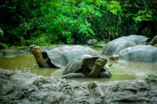 After the hike, we will visit the Giant Tortoise reserve, which is located in the highlands of Santa Cruz Island. Spend about two hours sharing time with these iconic Giant Tortoises. These animals, like most wildlife in Galapagos, do not feel fear when humans are nearby, so it is quite easy to get close and take great photos while respecting the 8 feet rule of the National Park. This ecosystem is also home to Darwin's finches and endemic evergreen vegetation, offering a unique opportunity to learn about the island's biodiversity.