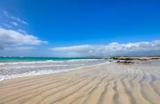 The trail also goes through a declared wetland sanctuary, where you can observe hypersaline lagoons from different viewpoints and enjoy a variety of marine birds and mangroves. The hike culminates at the top of the wall, where you can take another trail to a high point on the coast and enjoy stunning views of the coastline. This hike is an opportunity to learn about the island's history and see its unique wildlife while also taking in the beautiful scenery.
