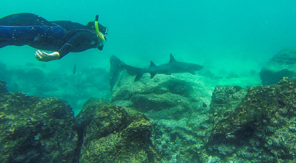 After the hike, participants can enjoy a refreshing snorkeling activity to observe the diverse marine life of the Galapagos Islands. Snorkeling gear will be provided, and participants will have the opportunity to swim with sea turtles, rays, and colorful fish in crystal-clear waters.