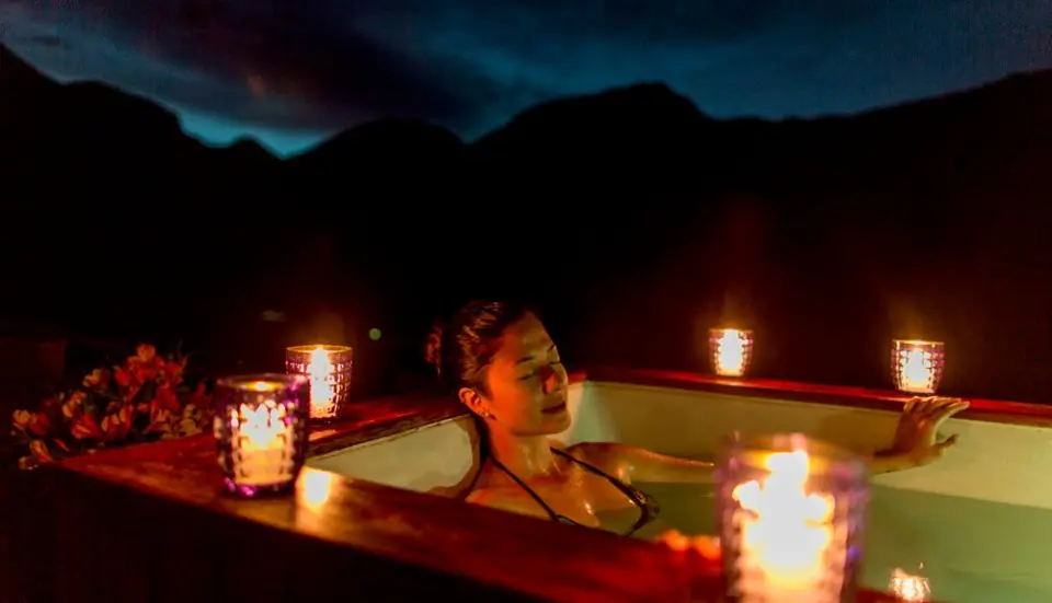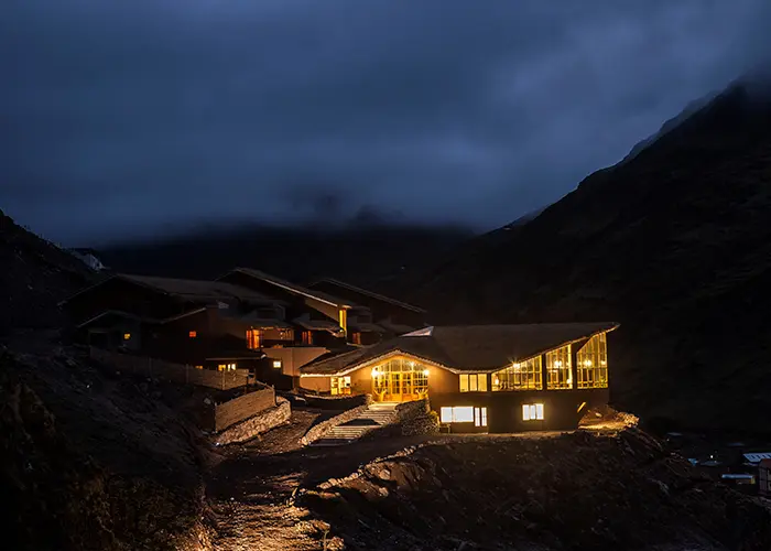 You'll spend the night at Huacahuasi Lodge, situated at 12,585 feet and overlooking the river. Every room has a private balcony or terrace with a Jacuzzi so you can relax and enjoy after or before dinner.