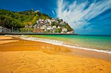 We’ll be on the road for a bit this afternoon, so we’ll break it up by stopping in Pasai Donibane for a coffee break in this truly picturesque town. Here we’ll take the boat over the river and enjoy an easy coastal walk to San Sebastian. The Pasai Donibane to San Sebastian hike is a popular Sunday outing among locals. Camino pilgrims can be seen walking in the same direction (indicated by yellow arrows), but that is no problem - your walk is not a pilgrimage but equally beautiful and takes about 2.5 hours. The walk goes along the sea on the Ulía mountain that borders the east side of the city of San Sebastian, just beyond Zurriola beach.