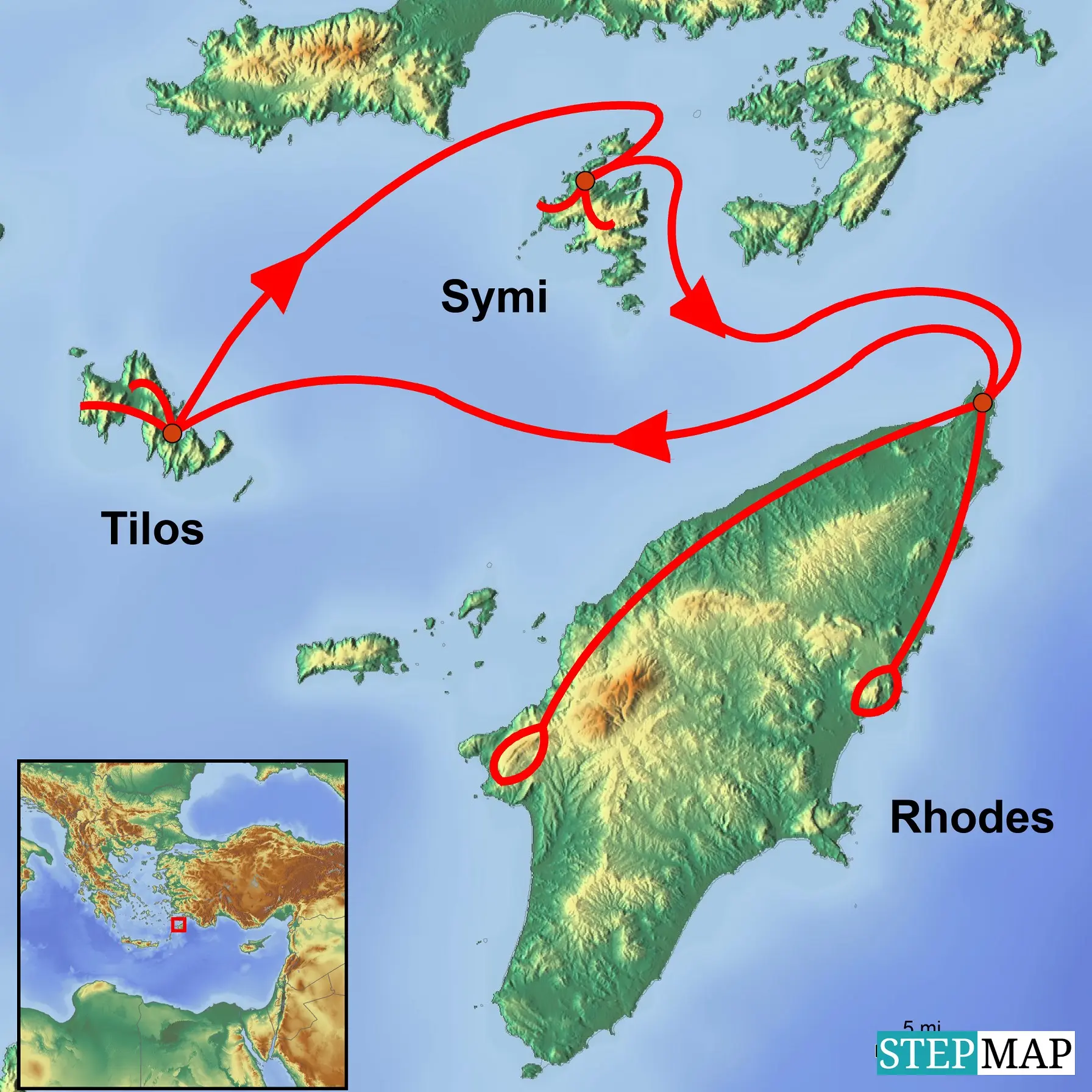 This morning we'll check out, grab our luggage and hop on one of the amazing Greek ferries for the passage to the island of Tilos. We'll disembark in the small port of Livadia, our home for the next two days. When we arrive, we'll check into our sea view rooms at a beautiful coastal resort, complete with a private beach. Tilos is an island totally off the beaten track, with a rough, mountainous and verdant landscape, but very few people, only about 500 permanent residents. The hills and plains are home to four hundred species of flowers and herb and are inhabited by numerous species of rare birds like Bonelli’s eagle, hawks, nightingales, goldfinches, herons, and bee-eaters. It has tiny, picturesque villages and charming beaches. This is the place where the last elephants of Europe lived: The 4-5-foot-tall dwarf-elephants appeared in the island 45,000 years ago and disappeared only 4,000 years ago!