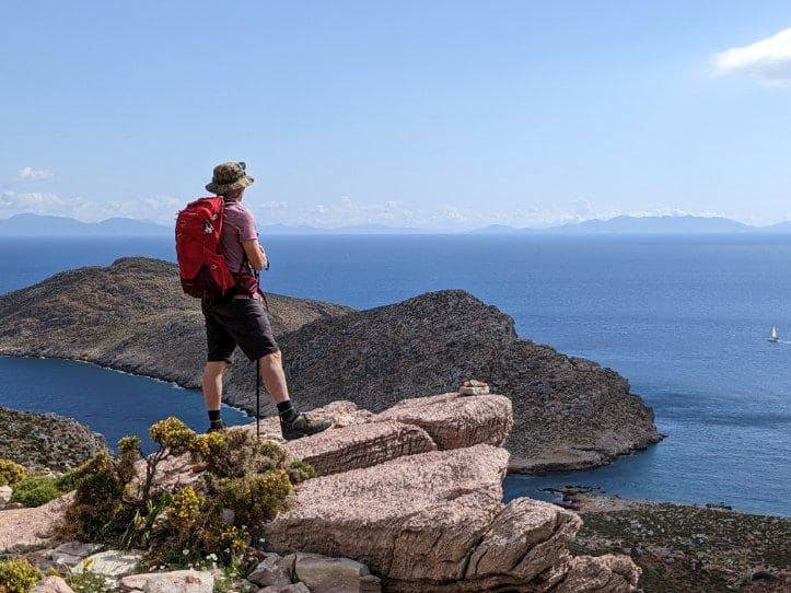 Another beautiful morning on a Greek island, another beautiful morning hike! Today we'll trek clear across the island, marveling at the vistas that seem to open up every few minutes. The trail winds through rocky island landscape is dotted with junipers, eventually leading to the stunningly beautiful beach of Emilianos, named for the tiny monastery perched on an equally tiny islet just offshore. Here we'll enjoy our well-deserved beach party, with food, drinks, and of course, the sea! Later in the afternoon our private boat will transport us back to Yialos town and our hotel. If time permits, we’ll stop along the way and have a swim break in a deserted cove.