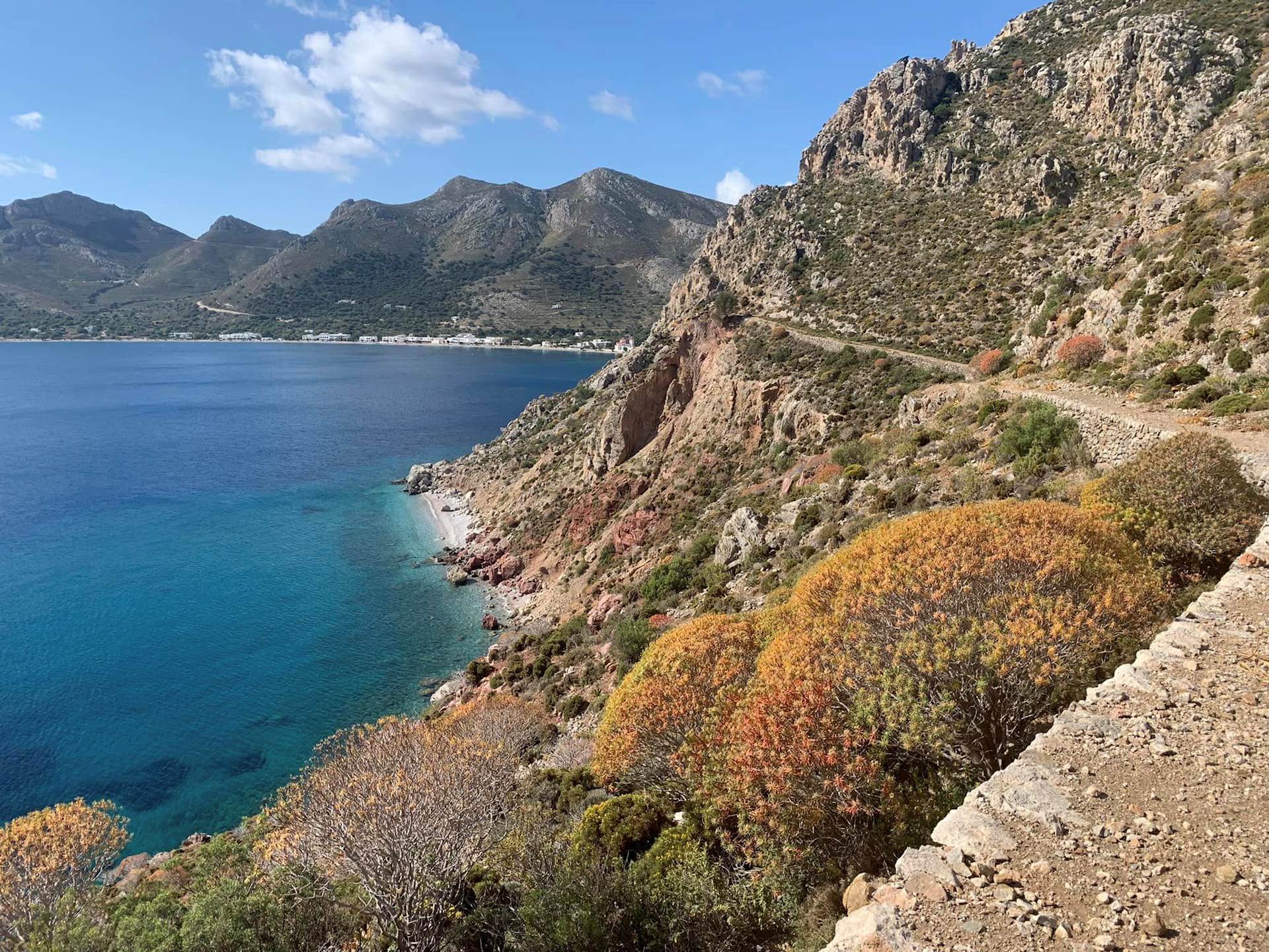 Non-Hiking Ideas: If you decide to opt out of today's hike, you might consider wandering the laid-back village of Livadia to see a true slice of Greek island life, hanging out with the locals in the tiny town square should provide plenty of island gossip. The other town on Tilos is Megalo Chorio, perched at the base of a nearby mountain, a taxi (or rental car) ride away. You can spend some time wandering its tiny streets, not many tourists find their way there. And you can spend some quality beach time at our resort...it's the best waterfront on the island.
