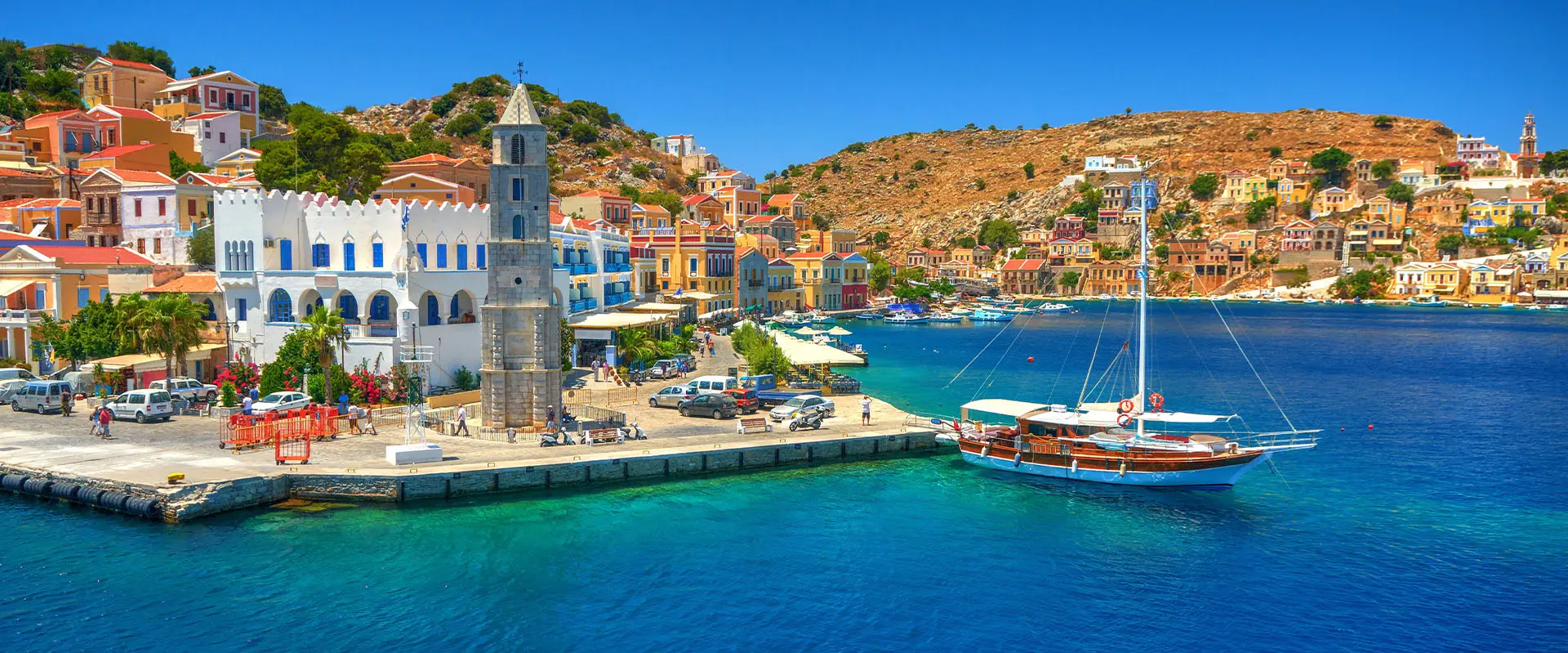 One of the excellent Greek ferries will move us today to the picturesque island of Symi. While approaching the port of Symi, one has the overwhelming feeling of entering a perfectly painted image of a scenic traditional village. As you glimpse the dreamy harbor of Gialos town for the first time you'll be captivated by its charm. Wonderfully well-preserved houses huddled together as they cling to the steeply rising hills beyond. Symi has a true romantic charm enhanced by the lack of any high-rise hotel developments that can be found on other islands. Few can resist the superb spectacle of the town of Symi showing off its impeccable architecture. Your friends back home will think your photos of Symi have been photoshopped!