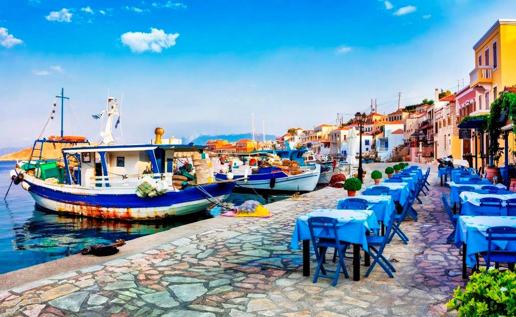 Alfresco dining in a picturesque harbor of a remote Greek island is just one of the great dining experiences you should enjoy at least once in your life! So tonight, our cook will prepare a wonderful and authentic Greek dinner to welcome us aboard. Greek and Turkish cuisine from the Dodecanese is hearty and exotic, with plenty of beef, lamb, chicken dishes cooked with spices, herbs and nuts. Vegetarians need not feel left out, as Greeks are masters of meatless dishes as well. Depending on what the local fisherman have netted, seafood will find its way onto our table as well. And of course, a true Greek salad of fresh tomatoes, peppers, cucumbers, onions, and olives topped with a slab of feta is a small piece of heaven! It's best to wash all of this wonderful food down with some of the local Greek wines or beers.