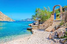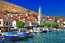 Our Greek adventure starts today in the port of Kos, where we'll board our private 90' motor yacht, built in the traditional Turkish Gulet style, and our home for our island explorations. It features 5 private air-conditioned cabins, each with its own modern bathroom. This is the true way to experience life in the Greek Islands! There are great amenities, also...with on-board wifi, crew, chef, and topside deck with ample room for sunbathing and relaxing while we watch the island scenery drift by. (You may want to arrive a day early to explore Kos and get over your jet lag before your cruise, or you can extend your stay after your cruise in Kos. Kos, the second largest island of the 12 islands (Dodecanese islands) has a very mild climate and very fertile lands. The island houses a 560-year-old tree, a 211-year-old fountain and miles of gorgeous beaches scattered along its coastline. Kos is one of the islands with the best night life, too. Nafklirou, a street full of bars, is always crowded, colorful, and full of life. Asclepion, known to be the birthplace of Hippocrates, the "Father of Medical Science", is located here. Over many centuries and in fact millenia, many Eastern Mediterranean people with health problems were treated in Kos.