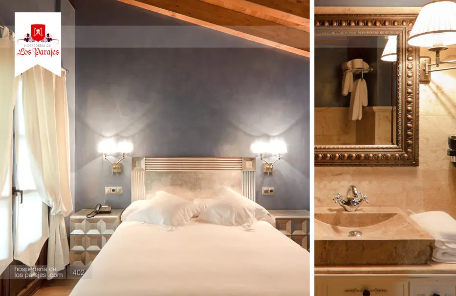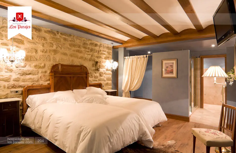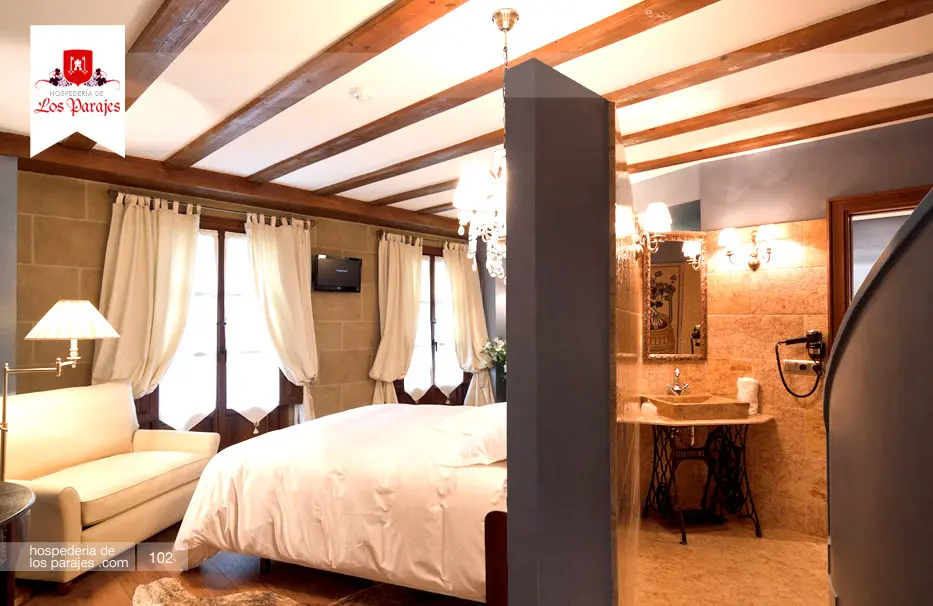 In the heart of Rioja-Alavesa, Laguardia, overlooking the main plaza, there is a unique place to live an experience of the area: The "Hospedería de los Parajes". A new hotel concept, where history and modernity combine to accommodate a range of rooms and services full of sensations. Passing through the main gate in the wall of Laguardia, you will find an exceptional building. The historic Hospederia de los Parajes has its own spa center with hammam, hot tub and wine therapy. There is free Wi-Fi access and stylish design throughout. Guests can taste a range of wines in the Hospederia's 15th-century wine cellar. There is also an elegant restaurant and a spacious bar area. Rooms at the Hospederia are built around a patio covered with a glass ceiling, each offering full heating and air conditioning and a balcony or terrace. They also come with a dressing room, a bathrobe and slippers.