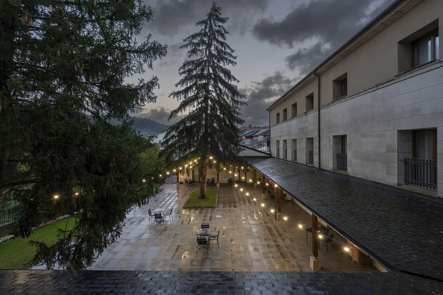 The Parador de Villafranca del Bierzo is located in the aforementioned town, in the El Bierzo region, just a stone's throw from Galicia. The building is a tourist landmark in the area and is surrounded by the region's splendid nature. The building's interior conveys the elegance, class, and comfort of a contemporary building, especially in the spacious restaurant, cafeteria, guest lounge, and terrace. The rooms, decorated in a rustic style, offer magnificent views of the region. The hotel is also equipped with a sauna and features two swimming pools, one outdoor and one heated. The restaurant of Parador de Villafranca offers authentic El Bierzo cuisine, based on the rich and renowned products from the well-stocked pantry of this prolific region of León, brought up to date. A menu featuring the unique botillo as its most emblematic dish.