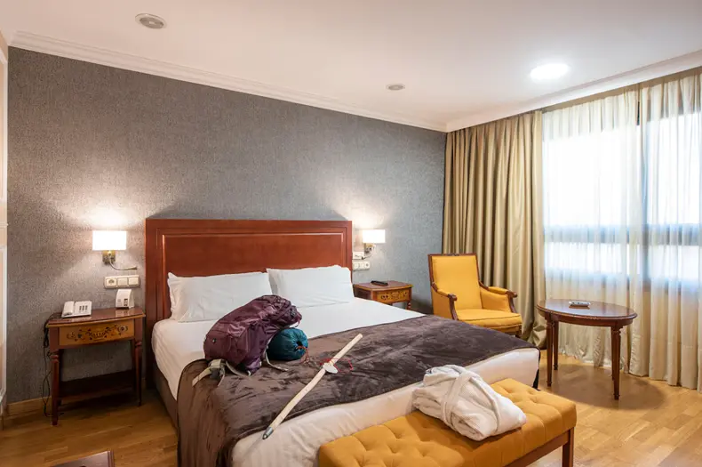 A hotel in love with luxury, a hotel in love with art. The Eurostars Araguaney Hotel is a prestigious five-star hotel located in the center of Santiago de Compostela. Founded in 1985, it became synonymous with elegance and distinction from the very beginning, and today is undoubtedly the benchmark establishment in the capital of Galicia. The Eurostars Araguaney has 81 fully equipped rooms, combining classic-style rooms with more avant-garde rooms. The hotel has a swimming pool, gym, sauna, private parking, and all kinds of facilities for its guests, including an unbeatable complex where you can enjoy horse riding sessions atop excellent horses. All rooms enjoy exterior views of the heart of Santiago. Recently renovated, the rooms feature a selection of works by today's most renowned artists. The room decor has been customized to reflect different styles: avant-garde design in some rooms, and traditional and classic in others. A symphony of amenities that delights our most discerning guests.